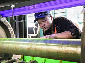 隨著市場對熱鍍鋅產(chǎn)品品質(zhì)的要求越來越高,光整機(jī)的日常維護(hù)變得至關(guān)重要,在光整機(jī)工作中,不僅需要及時(shí)調(diào)整因震動故障導(dǎo)致的問題,光整機(jī)工作輥輥面的清洗也值得關(guān)注,因?yàn)楣庹麢C(jī)工作一段時(shí)間后,工作輥輥面易粘附鋅粒,會在帶鋼表面產(chǎn)生很明顯的輥印, 這會嚴(yán)重影響帶鋼的表面質(zhì)量, 故須及時(shí)對工作輥輥面進(jìn)行清潔,以消除輥面粘鋅。[查看詳情]