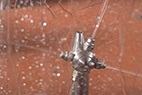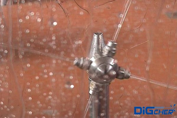 德高潔高壓水發(fā)酵罐自動(dòng)清洗系統(tǒng)是利用高壓水射流的動(dòng)能將發(fā)酵罐內(nèi)壁表面上的堅(jiān)硬垢物擊碎,從而剝離并清除掉。具體清洗流程是將特制的三維洗罐器伸縮機(jī)構(gòu)安裝在發(fā)酵罐入口上,伸縮桿伸進(jìn)罐內(nèi),伸縮桿在罐內(nèi)伸縮和沿內(nèi)壁周圍方向移動(dòng)。當(dāng)三維洗罐器水平旋轉(zhuǎn)時(shí),水射流形成的旋轉(zhuǎn)力矩帶動(dòng)噴嘴在垂直面內(nèi)旋轉(zhuǎn)。由于三維旋轉(zhuǎn)噴頭與伸縮桿的復(fù)合運(yùn)動(dòng),高壓水射流可以覆蓋發(fā)酵罐內(nèi)任何位置,從而完成清洗。